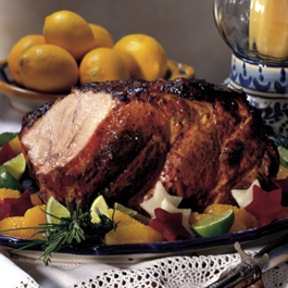 3. Place meat on rack in roasting pan (discard marinade). Pour 1 c. water into bottom of pan. Roast pork at 325° F 1 1/2 to 2 hours or until meat thermometer registers 150°F in center. Check the roast halfway through cooking time, adding more water to pan if necessary. Loosely tent top of roast with foil if it becomes too brown.